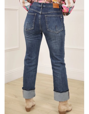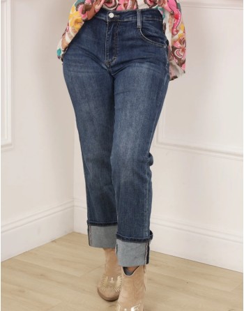 Jeans toile denim classique avec un large revers en bas. Longueur 7/8ème. 4 poches, légèrement stretch pour un max de confort. Brand Place du Jour.