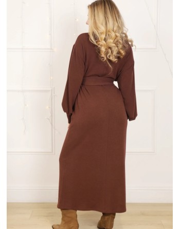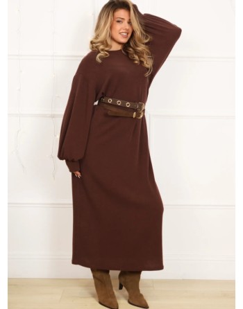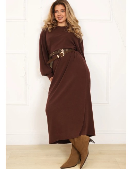 La robe Mabel en matière chaude et fluide marie à la perfection le chic, la simplicité et le confort. Unie, large et fluide elle se porte volontiers avec sa ceinture ou avec une ceinture large colorée pour bien marquer la taille. Manches longues et un peu bouffantes vers le poignet. Convient très bien aussi pour les rondes à porter tout en souplesse sans ceinture. Noir et marron/rouille.