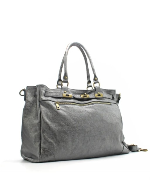 Grand sac en cuir couleur gun irisée. Détails métalliques et une fermeture zippée. Look intemporel et stylé.