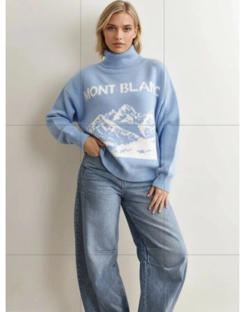 Sublime et très tendance le pull Mont Blanc! Tout doux à col roulé, bi colore ciel/écru ou taupe/écru avec le massif du Mont Blanc sur le devant. Au top pour un séjour à la montagne!