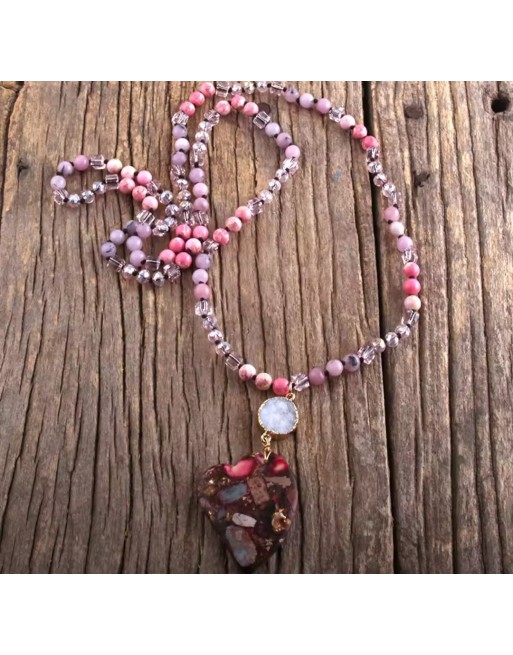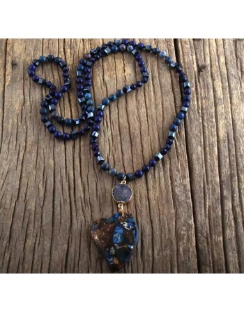 Collier en pierres colorées avec pendentif. Déclinée en 3 coloris, sans ouverture.