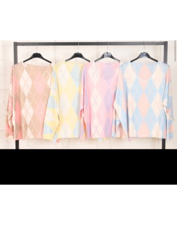Pull en maille fine viscose aux coloris pastels et avec un imprimé Burlington tendance. Col en V, manches longues.