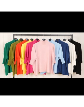 Pull coupé large dans une maille ultra douce et souple. Col cheminé et des manches 3/4 qui se terminent par un bord à côtes. Confort et douceur assurés.
