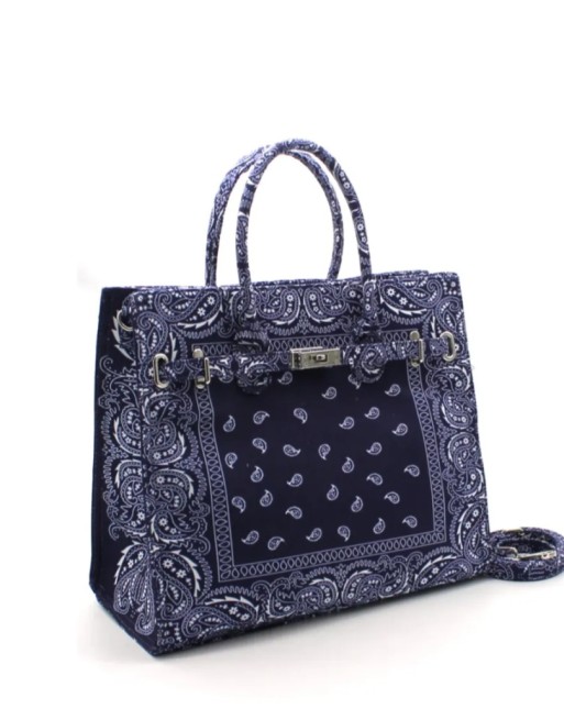 Sac à main en tissu imprimé bandana très tendance. Grand format avec des anses ainsi qu'une bandoulière amovible. Fermeture zippée pour une sécurité maximale.
