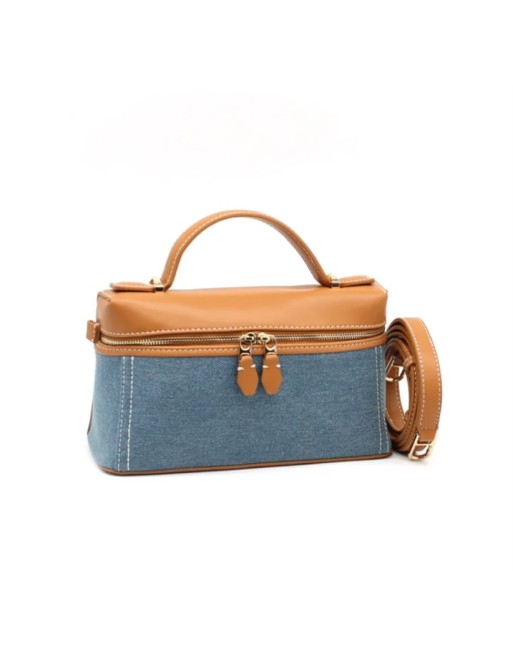 Petit sac en bi matière jeans et cuir végane couleur camel. Fermeture éclair circulaire et une bandoulière amovible il se porte tout aussi bien à la main que en mais libres. Ravissant!