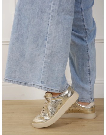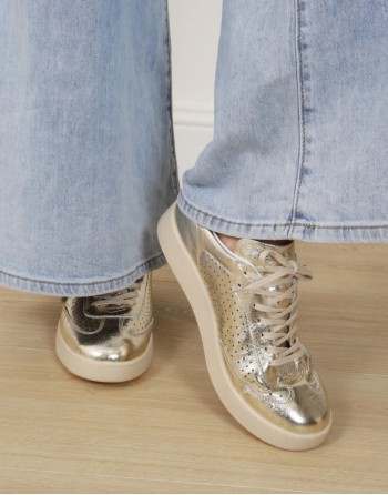 Basket en cuir doré brillante à lacets. Semelle 3 cm. Du 36 au 41.