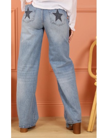 Jeans en coton et lyocell très confortable. Jambe droite large, taille normale en 2 coloris. Une étoile sur chaque poche derrière: denim délavé avec étoile marine ou blanc cassé avec étoile léopard. Légèrement stretch pour un max de confort. 5 tailles.