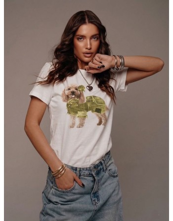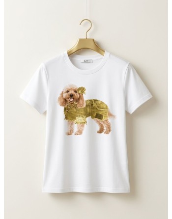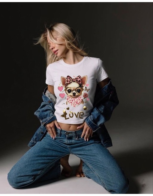Les teeshirts avec les chiens sont tout en haut du pic de la tendance et tellement mignons! Choisissez le vôtre. Taille unique, col rond, coton stretch très agréable, taille du 38 au 42.