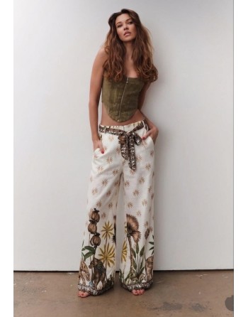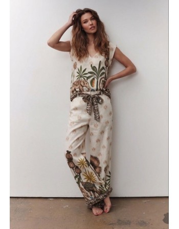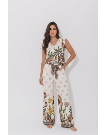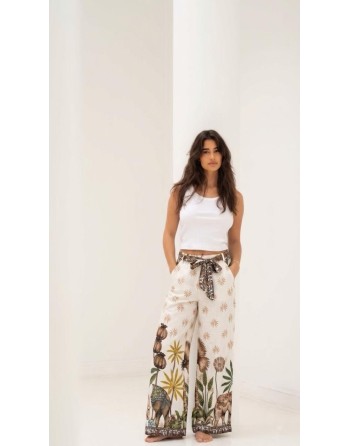 Pantalon large et fluide très agréable à porter. Taille élastique avec une ceinture amovible et 2 poches latérales. A porter avec un petit haut uni, très facile à combiner par sa multitude de couleurs savane, ou alors en total look avec le top du même imprimé, également disponible sur noter site. Laissez jouer les mix & match.